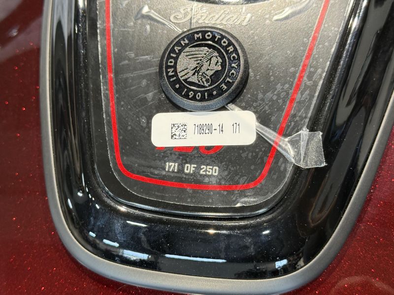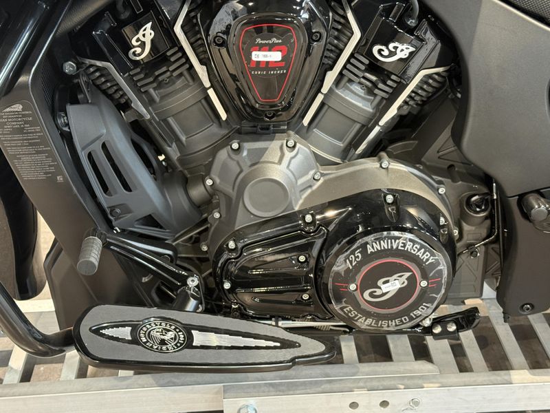 Featuring a chassis-mounted fairing, blacked-out finishes, and the liquid-cooled PowerPlus 112 cu-in engine, adorned with 125th anniversary badging throughout and meticulously hand-painted.