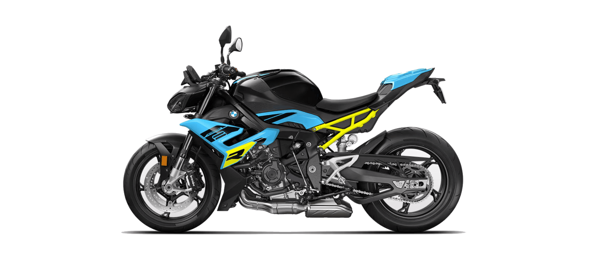 The S 1000 R Sport with the Bluefire/Mugiallo Yellow paint has a dynamic look. Tinted windscreen is not available in the U.S.